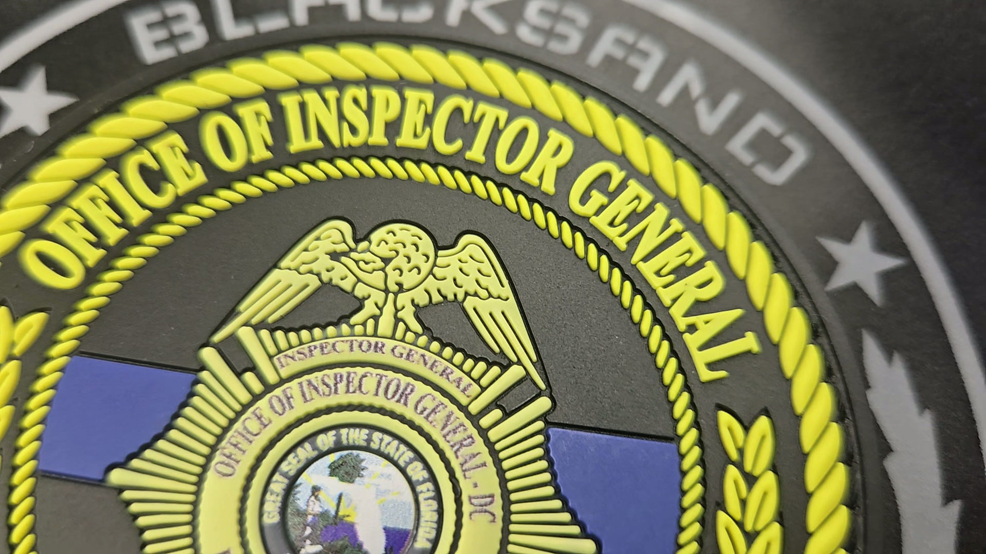 Honor the integrity of oversight with this premium PVC patch featuring the official insignia of the Office of Inspector General, Department of Corrections. Designed for durability and distinction, this patch captures the full detail of the original badge from the proud eagle and gold rope border to the Florida state seal and “In God We Trust” motto.